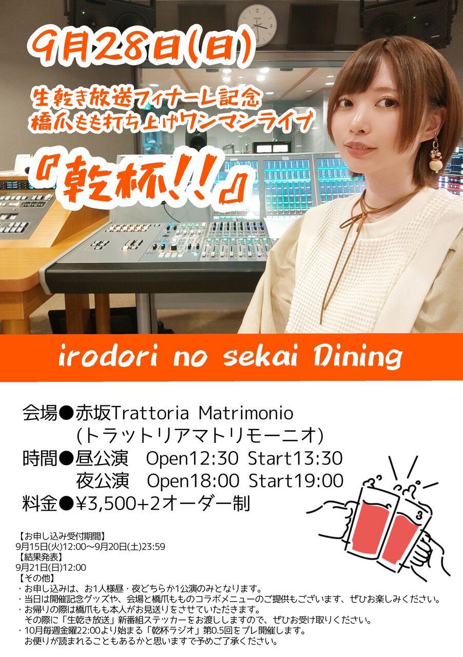 毎週金曜22:00配信「橋爪ももの乾杯ラジオ」のプレ開催を予定